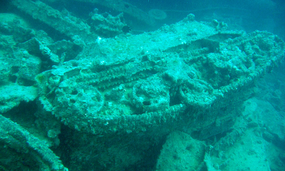 La particularité de la croisière Nord, au-delà de spots naturels riches et variés, c’est la plongée sur épave. La plus connue, inventée par Cousteau dans son film « le Monde du silence », c’est un navire écossais, le thistlegorm (le chardon) coulé lors de la seconde guerre mondiale. Son ventre contient encore le matériel roulant qu’il transportait (motos, voitures, tank..) ainsi qu’un train sur le pont dont la locomotive a été projetée à 50m de là.